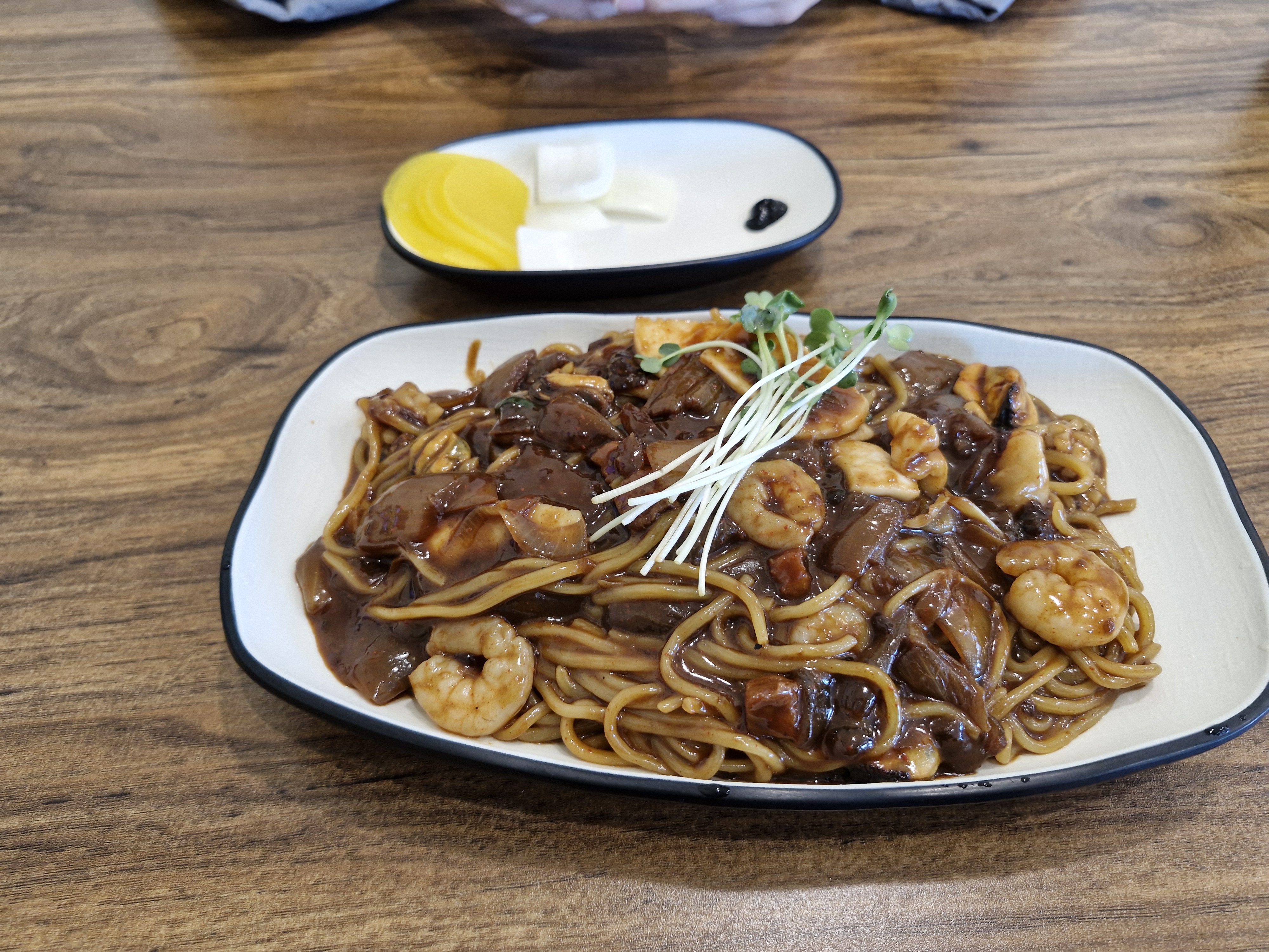이번엔 쟁반짜장 1인용과 해물짬뽕을 시켰어요.